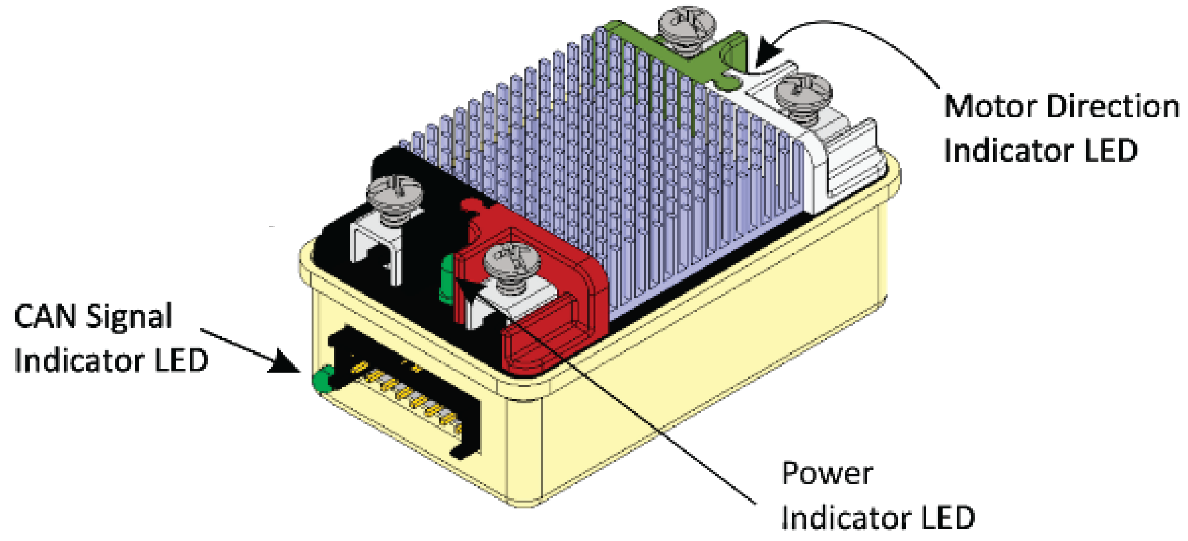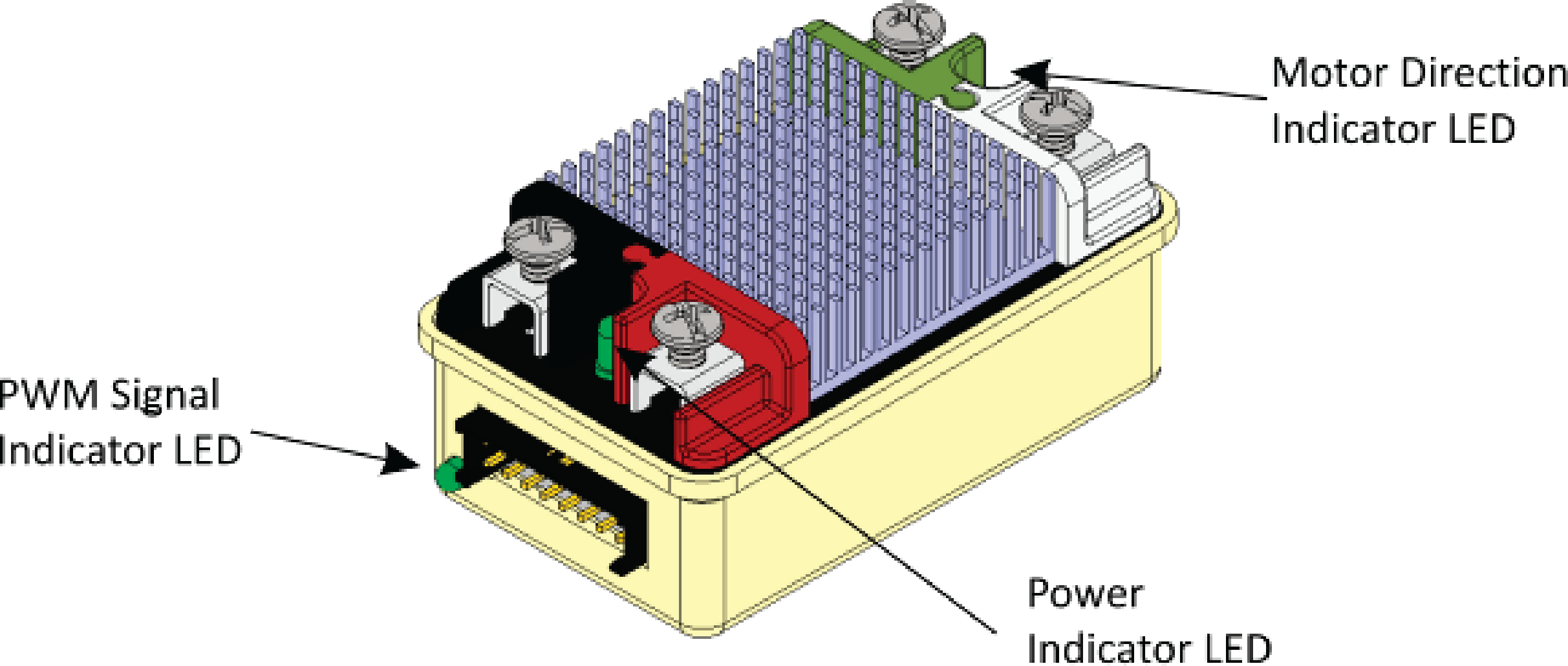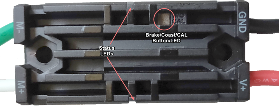 Brake/Coast/Cal Button/LED - Red if the controller is in brake mode, off if the controller is in coast mode