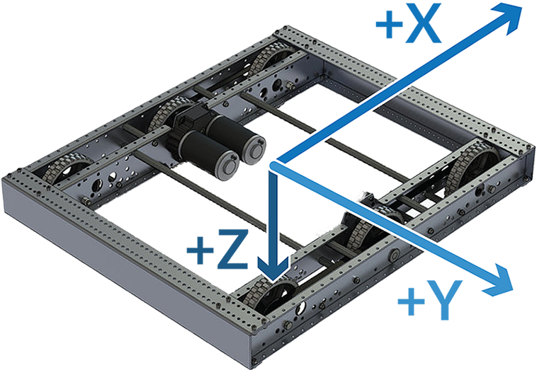 The drive axis conventions are different from common joystick axis conventions. See the Axis Conventions above for more information.