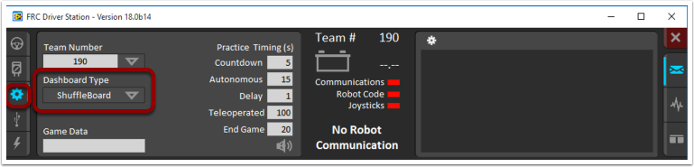 shuffleboardon Windows orpython shuffleboard.pyon macOS or Linux from~/WPILib/YYYY/toolsdirectory (where YYYY is the year and ~ isC:\Users\Publicon Windows). This is often easiest on a a development system that doesn’t have the Driver Station installed.